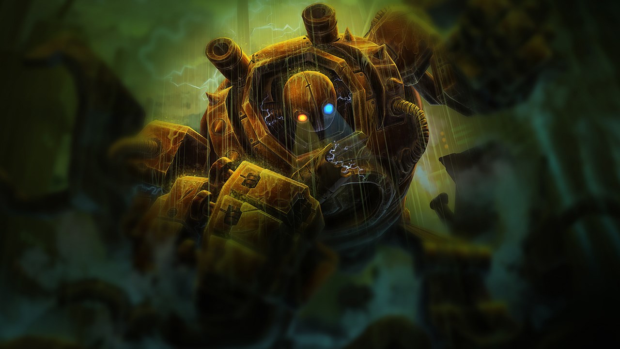 Blitzcrank is an enormous, near-indestructible automaton from Zaun, originally built to dispose of hazardous waste. However, he found this primary purpose too restricting, and modified his own form to better serve the fragile people of the Sump. Blitzcrank selflessly uses his strength and durability to protect others, extending a helpful metal fist or burst of energy to subdue any troublemakers.