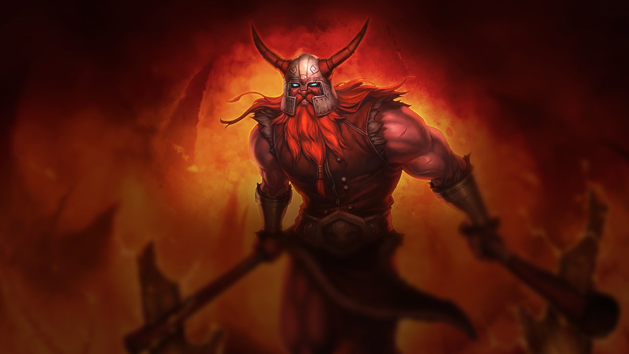 An unstoppable force of destruction, the axe-wielding Olaf wants nothing but to die in glorious combat. Hailing from the brutal Freljordian peninsula of Lokfar, he once received a prophecy foretelling his peaceful passing—a coward's fate, and a great insult among his people. Seeking death, and fueled by rage, he rampaged across the land, slaughtering scores of great warriors and legendary beasts in search of any opponent who could stop him. Now a brutal enforcer for the Winter's Claw, he seeks his end in the great wars to come.