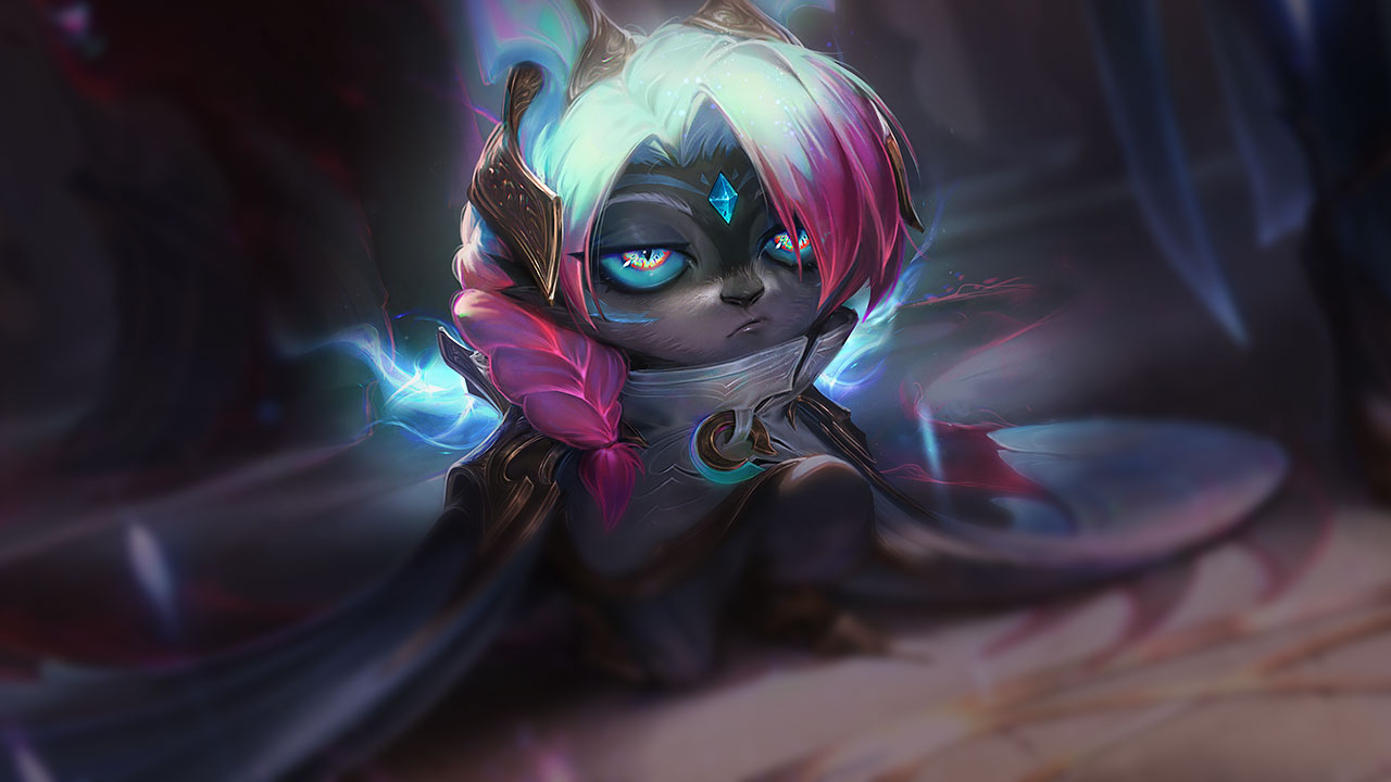 In the black heart of the Shadow Isles, a lone yordle trudges through the spectral fog, content in its murky misery. With an endless supply of teen angst and a powerful shadow in tow, Vex lives in her own self-made slice of gloom, far from the revolting cheer of the “normie” world. Though she lacks ambition, she is quick to strike down color and happiness, stopping all would-be interlopers with her magical malaise.